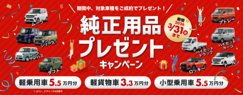 ブログこんにちは、ハピセです😊今日は新車をご検討中の皆さまに、ちょっと嬉しいお知らせです。 ただいま ハピセでは、ダイハツの対象車種を新車でご成約いただいたお客様へ、純正用品55,000円(税込)分をプレゼントするキャンペーン...
