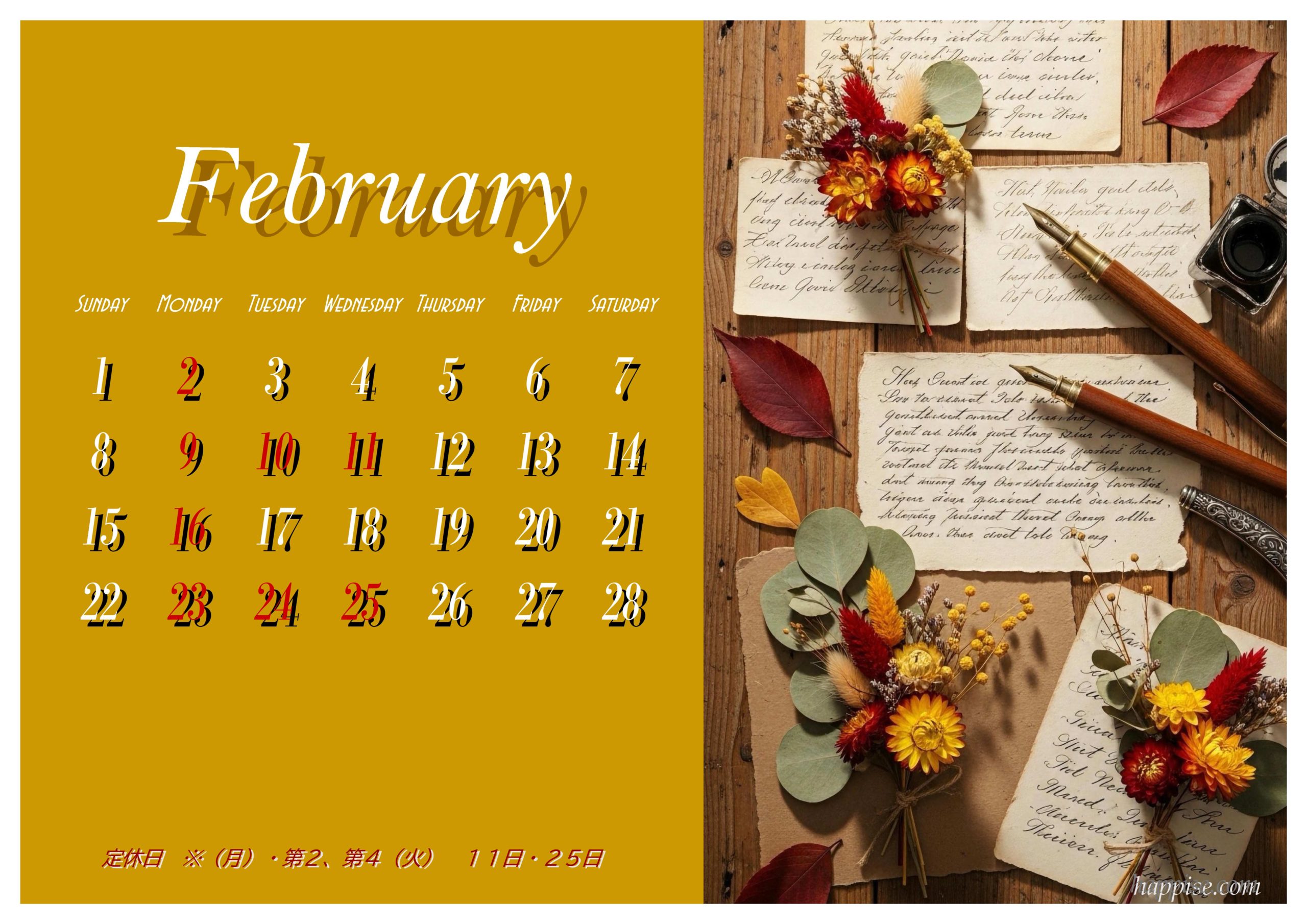2月の営業スケジュールは以下の通りです。